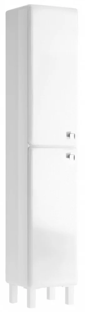 Високий підлоговий пенал для ванної кімнати має внутрішні полиці для зберігання. Корпус виготовлений з ламінованої ДСП товщиною 16 мм, фасади — з МДФ тієї ж товщини. Всі зовнішні поверхні, включаючи фасади, покриті високоглянцевим лаком, що забезпечує стійкість до вологи та легке очищення. Закруглені краї та плавні лінії формують сучасний та універсальний вигляд, який доповнюють хромовані круглі ручки.