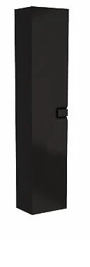 Підвісна конструкція дозволяє змонтувати цей пенал над умивальником або іншою сантехнікою, ефективно використовуючи вертикальний простір у ванній кімнаті. Корпус виготовлений з вологостійкого ДСП у поєднанні з матовим чорним фасадом, що забезпечує стійкість до вологи та конденсату. Дверці оснащені системою плавного закриття soft-close, яка запобігає гучним ударам та подовжує термін служби механізму.