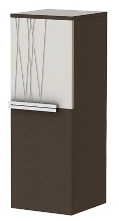 Підвісний пенал для ванної кімнати висотою 840 мм виготовлений з ламінованого декоративного вологостійкого ДСП. Фасад моделі виконаний з МДФ товщиною 19 мм з матовим покриттям, що надає бархатистої текстури, та прикрашений глибокою фрезеровкою рослинного орнаменту.