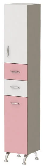 Високий пенал висотою 1915 мм має компактну ширину та виготовлений з ламінованого ДСП товщиною 16 мм для корпусу та МДФ для фасаду. Рожевий глянцевий фасад покритий емаллю, що забезпечує яскравий акцент та легкий догляд.