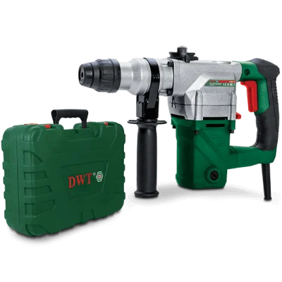 Перфоратор DWT BH09-26 BMC є ефективним інструментом потужністю 950 Вт, призначеним для свердління отворів у твердих будівельних матеріалах, а також для довбання бетону, цегляної кладки та каменю. Він забезпечує силу удару 4 Дж та частоту ударів до 4000 уд/хв, що дозволяє швидко та якісно виконувати демонтажні роботи, такі як зняття плитки або штукатурки.