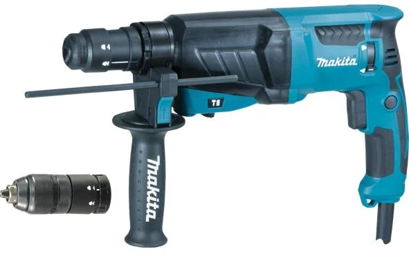 Перфоратор Makita HR2630T є професійним інструментом, що поєднує три режими роботи: свердління, свердління з ударом та довбання, дозволяючи ефективно працювати з різними матеріалами. Оснащений двигуном потужністю 800 Вт, він забезпечує енергію удару 2.4 Дж при вазі менше 3 кг, що робить його потужним та маневреним.