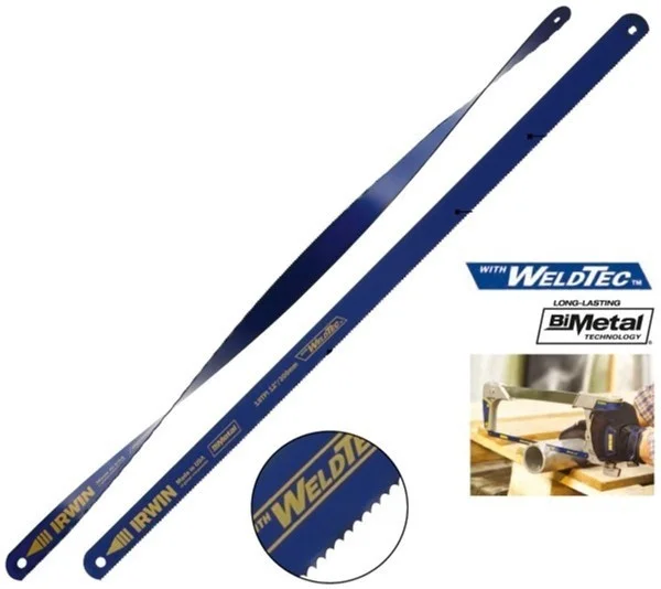 Біметалеві полотна для ножівки по металу поєднують високу пружність основи з ріжучими властивостями швидкорізальної сталі. Основа з марганцевої сталі забезпечує гнучкість і стійкість до розламу, тоді як наварені зуби зі сталі M2 забезпечують ефективне різання. Полотно має довжину 300 мм та щільність зубів 18 TPI (зубів на дюйм), що оптимально для різання тонкого та середнього металу.