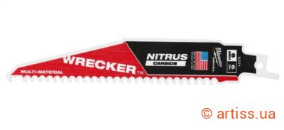 Milwaukee NITRUS CARBIDE™ WRECKER (48005271) – інноваційне полотно для шабельної пили довжиною 150 мм з кроком зубців 4.2 мм, розроблене для екстремальних навантажень.
