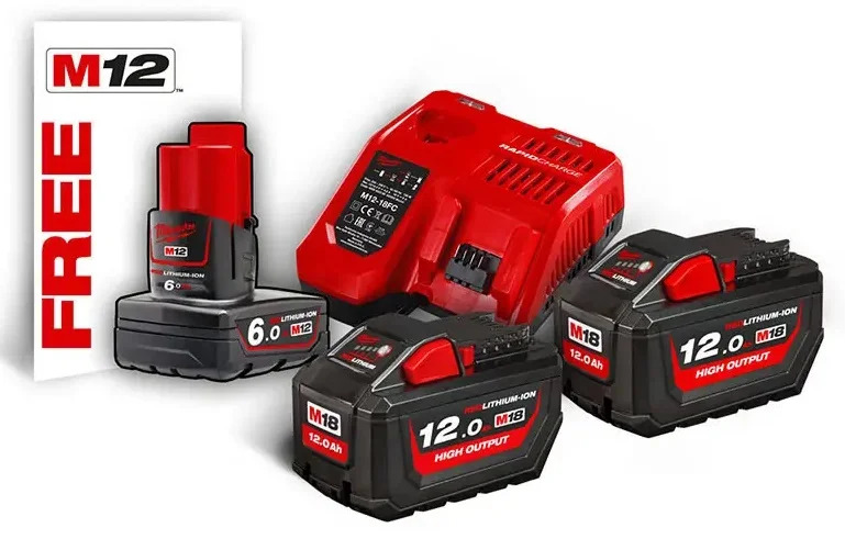 - Висока енергоефективність: Акумулятори M18 HB12 забезпечують до 50% більше енергії та менше нагрівання, дозволяючи виконувати тривалі та інтенсивні роботи.