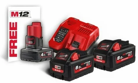 До складу набору входить швидкий зарядний пристрій M12-18FC, який сумісний як з акумуляторами M12™, так і з M18™. Цей пристрій забезпечує ефективну зарядку, наприклад, акумулятор M18 HB 8.0 Аг повністю заряджається за 87 хвилин. Літій-іонна технологія акумуляторів гарантує відсутність ефекту пам'яті та мінімальний саморозряд, що забезпечує стабільну продуктивність протягом усього терміну служби.