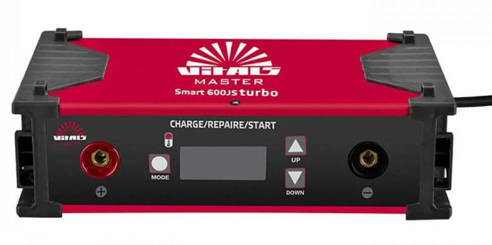 Зарядний пристрій Vitals Master Smart 600JS Turbo є багатофункціональним цифровим апаратом, що поєднує функції зарядки акумулятора (CHARGE), пуску двигуна (START) та резервного джерела живлення (STAND-BY). Завдяки мікропроцесорному управлінню, він забезпечує безпечну та ефективну роботу з усіма типами акумуляторів, включаючи GEL, WET та Ni-Cd, з напругою 6, 12 або 24 В.