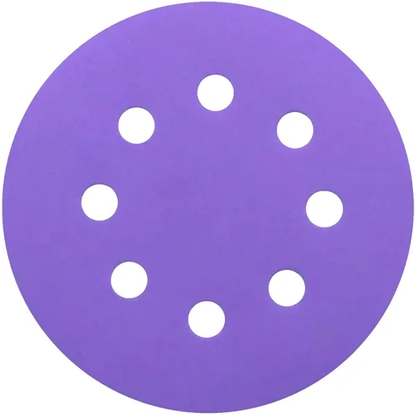 Круг діаметром 125 мм оснащений кріпленням на липучці (Velcro), що гарантує швидку та зручну заміну на інструменті. Наявність восьми отворів по периметру диска сприяє ефективному відведенню пилу з робочої зони, запобігаючи засміченню абразиву та забезпечуючи чистоту поверхні під час шліфування. Це особливо важливо на етапах тонкої доводки, де будь-яка частинка пилу може залишити небажані дефекти.