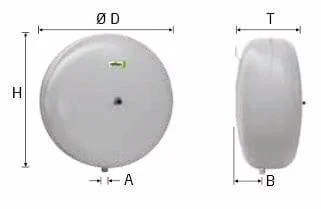 Корпус бака має плоску циліндричну форму та пофарбований у сірий колір, що дозволяє йому гармонійно вписуватися в інтер'єр котельні. Для зручності монтажу передбачено спеціальне вушко для настінного кріплення. Всередині бака встановлена незамінна бутилова мембрана, яка повністю виключає дифузію між газовою та водяною камерами, зберігаючи постійний тиск повітряної подушки. Максимальна робоча температура становить 70 °C, а допустимий робочий тиск – 3 бар.