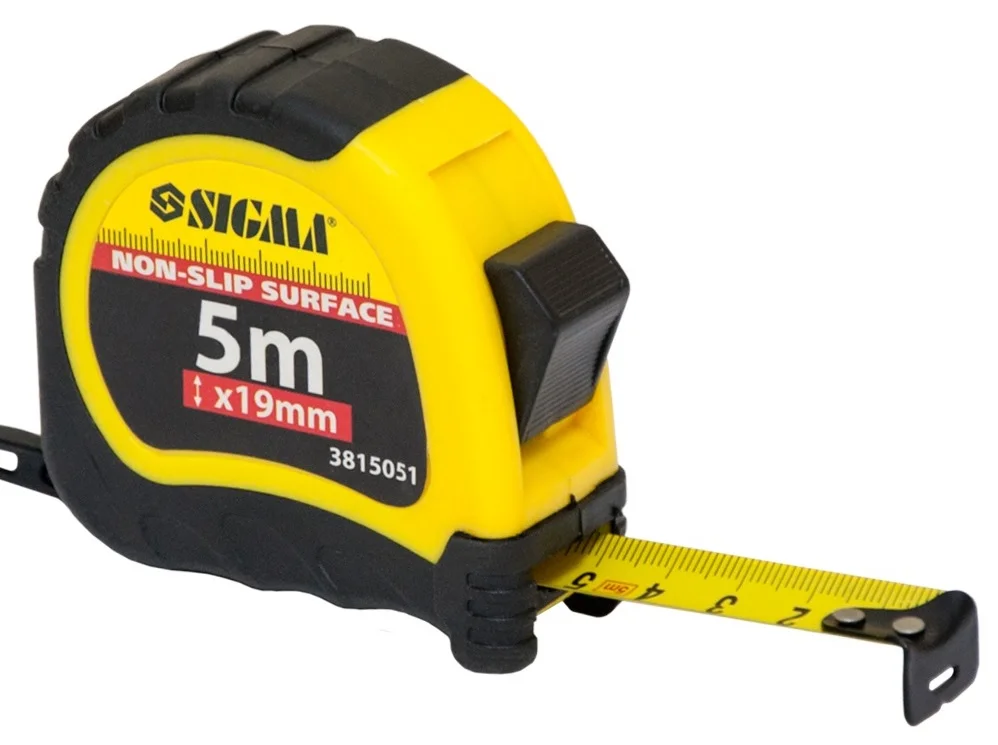 Прогумована рулетка Sigma Shiftlock довжиною 5 метрів та шириною стрічки 19 мм є зручним та надійним інструментом для точних вимірювань у побутових та професійних умовах. Її корпус виготовлений з ударостійкого ABS-пластика з прогумованими вставками TPR, що забезпечує надійне захоплення та додатковий захист при випадкових падіннях.