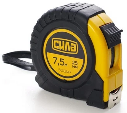 Рулетка Сила Стандарт 7,5м х 25мм призначена для точних лінійних вимірювань у різних сферах діяльності. Завдяки максимальній довжині стрічки 7,5 метра та ширині 25 мм, вона забезпечує зручність та легкість у використанні як для побутових, так і для професійних завдань.