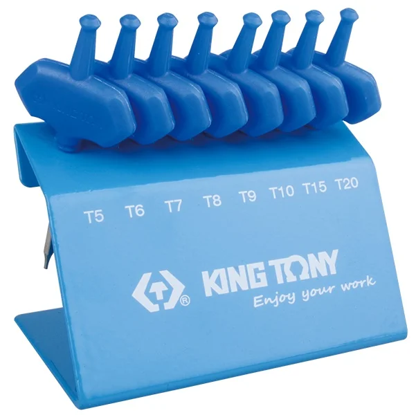 Набір шестигранних ключів TORX King Tony 23308PR включає 8 одиниць розмірів від T5 до T20, призначених для роботи з відповідними кріпленнями. Ключі виготовлені з високоякісної легованої сталі, що забезпечує їх довговічність, зносостійкість та ефективну передачу зусиль.