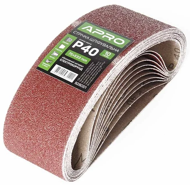 Інформація про продукт "Шліфувальна стрічка нескінченна 75мм Apro Р100 L533 мм"