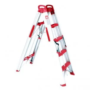 Алюмінієва драбина-трансформер виготовлена з профілю та відповідає стандарту EN131. Унікальна система складання робить її компактною для транспортування та зберігання — у складеному вигляді розміри становлять 1470х520 мм. Конструкція витримує навантаження до 150 кг та має чотири рифлені сходинки для безпечного утримання.
