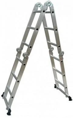 Шарнірна драбина-трансформер Кентавр 4х3м виготовлена з високоміцного алюмінієвого профілю, що забезпечує її легкість та стійкість до корозії. Завдяки надійним шарнірним з'єднанням, ця модель може трансформуватися у чотири різні конфігурації: приставну драбину, драбину-стрем'янку, робочий поміст та драбину з консоллю, що робить її універсальним рішенням для широкого спектра завдань.
