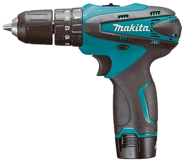 У комплект поставки входять два Li-ion акумулятори BL1013 на 10.8 В та 1.3 А/год, зарядний пристрій, швидкозатискний патрон, а також чохол та валіза для зручного зберігання та транспортування. Шуруповерт Makita HP330DWE є ударним типом, що дозволяє свердлити отвори до 10 мм у металі та до 21 мм у деревині. Цей інструмент ідеально підходить для монтажних робіт, складання меблів, ремонту та інших завдань, де потрібна мобільність та точність.