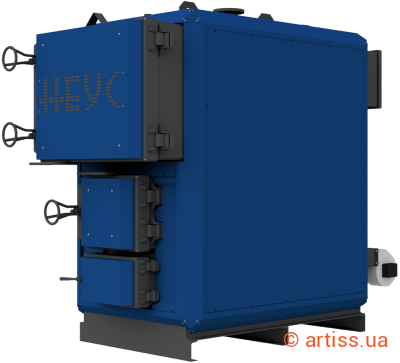 Теплообменник изготовлен в виде цилиндра, в котором размещены ряды стальных труб. Это обеспечивает максимально эффективный теплообмен и экономное сжигание топлива. Для производства теплообменника используется высококачественная сталь толщиной 6-8 мм. Конструкцией котла предусмотрена чугунная колосниковая решетка, которая обеспечивает равномерное сжигание топлива, независимо от его уровня влажности. Поддержание заданной температуры в котле обеспечивается блоком управления с PID, который плавно изменяет частоту вращения вентилятора. Такая система обеспечивает устранение газов, выделяющихся в процессе горения, а также защиту отопительной системы от закипания теплоносителя. Загрузка топлива осуществляется в ручном режиме. Для перевода котел в режим автоподачи топлива, необходимо установить пеллетную горелку.