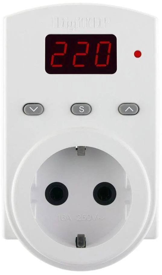 Реле напруги DigiTOP VP-10AS призначене для захисту електрообладнання та побутової техніки від неприпустимих коливань напруги в мережі. Пристрій постійно аналізує вхідну напругу в діапазоні 120-270 В і автоматично відключає підключені прилади, якщо напруга виходить за встановлені користувачем межі.