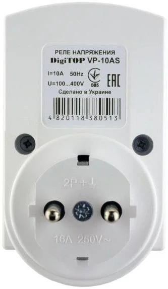 Реле напруги DigiTOP VP-10AS з релейним типом захисту та одним виходом з клемним підключенням є ефективним рішенням для забезпечення стабільної роботи електроприладів у домашніх умовах або невеликих офісах, де можливі перепади напруги.