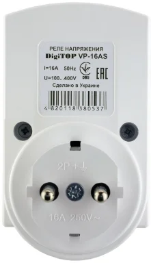 Реле напруги DigiTOP VP-16AS призначене для захисту електрообладнання та побутової техніки від недопустимих коливань напруги в електричній мережі. Пристрій постійно аналізує вхідну напругу в діапазоні 120-270 В і автоматично відключає підключені прилади у разі виходу показників за встановлені межі.