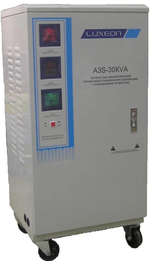 Стабілізатор напруги Luxeon A3S-30kVA Servo є оптимальним рішенням для захисту чутливого та потужного електрообладнання у промислових об'єктах, великих приватних будинках, офісах, а також на виробничих ділянках, де потрібне надійне та стабільне трифазне електроживлення.