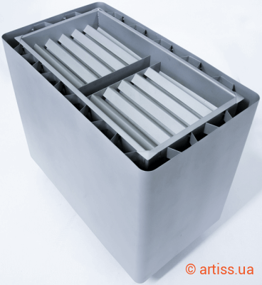 Зверху на кам’янці є спеціальна решітка для укладання каміння для саун - “корона”. “Корона” також захищає ТЕНи від механічного пошкодження від каменів та виступає в якості затримувача невеликої кількості води.