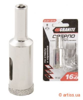 Свердло трубчасте з алмазним напиленням GRANITE Ø 16 мм (модель 2-01-216) — надійний інструмент для точного свердління отворів у твердих та крихких матеріалах.