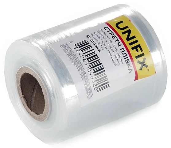 Стретч-плівка Unifix прозора має товщину 20 мкм, що забезпечує оптимальний баланс міцності та еластичності для надійного пакування. Конструкція з поліетилену дозволяє матеріалу розтягуватися та щільно обтягувати предмети різної форми, фіксуючи їх без використання клейової основи.