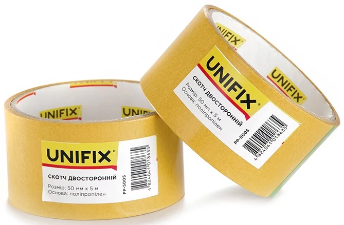 Інформація про продукт "Стрічка клейка двостороння на поліпропіленовій основі 5 м 50 мм 90 мкм Unifix (PP-5005)"