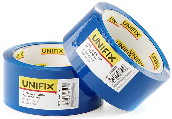 Синя клейка стрічка Unifix застосовується для заклеювання картонних коробок, пакувальних пакетів та формування вантажних палет. Вона підходить для використання в офісах, інтернет-магазинах, на виробництві та в домашніх умовах для надійної фіксації посилок під час транспортування або зберігання.