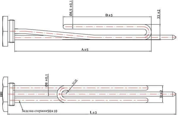 - Оптимізована конструкція: Гнута форма ТЕНа сприяє кращому охопленню об'єму води та запобігає утворенню зон з недостатнім нагрівом, підвищуючи загальну ефективність роботи водонагрівача.