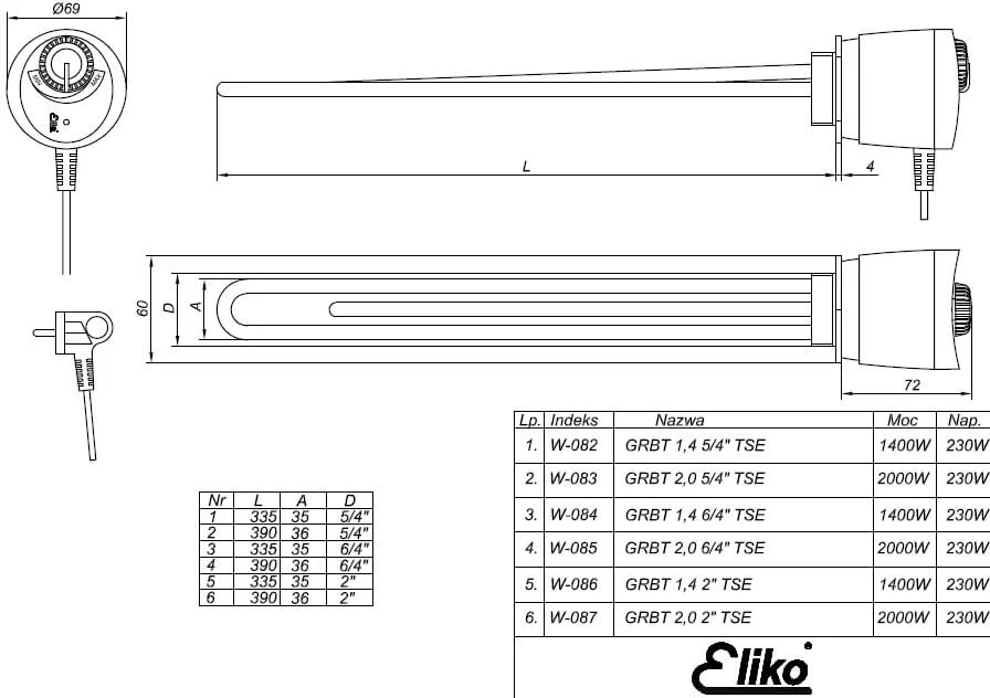 Інформація про продукт "W087 Електричний ТЕН Eliko GRBT 2,0 U2" TSE"