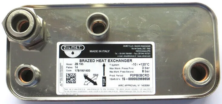 Інформація про продукт "17B1951400 Теплообмінник вторинний на газовий котел (14 пластин)"