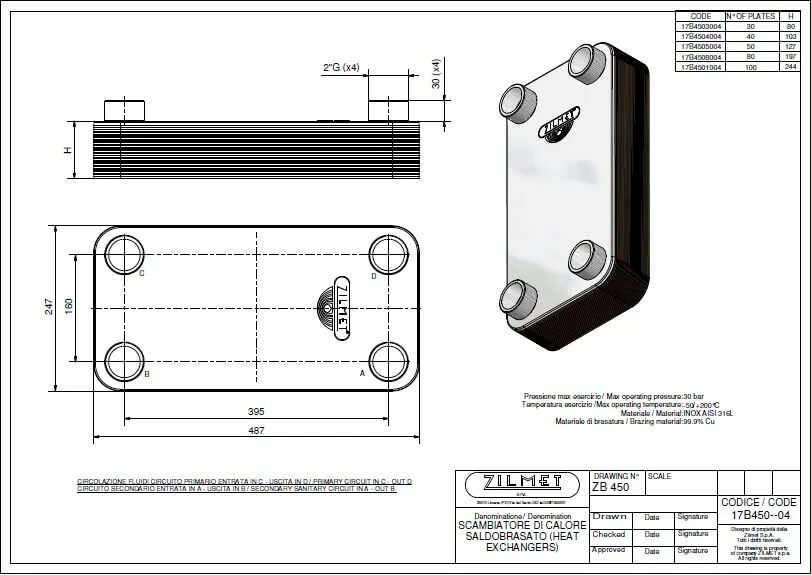 Вторинний теплообмінник призначений для підігріву санітарної води у двоконтурних газових котлах. Конструкція з 80 пластин із нержавіючої сталі забезпечує ефективний теплообмін між контуром опалення та системою ГВП, що дозволяє отримувати гарячу воду безперервно. Модель виготовлена в Італії брендом Zilmet з дотриманням стандартів якості для надійної роботи у складі опалювального обладнання.