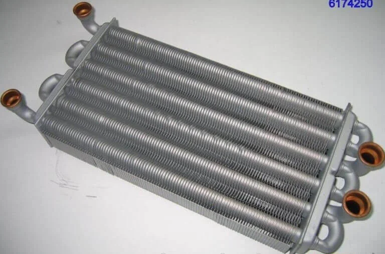 Бітермічний теплообмінник призначений для навісних газових котлів потужністю 30 кВт. Конструкція пристрою дозволяє одночасно нагрівати воду для системи опалення та гарячого водопостачання в одному контурі, що спрощує будову котла та підвищує ефективність теплопередачі.