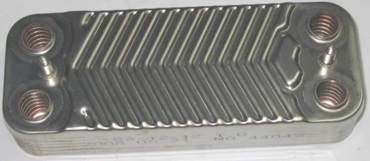 Пластинчастий вторинний теплообмінник виконаний з нержавіючої сталі та міді для підвищеної корозійної стійкості та ефективного теплообміну. Він призначений для підготовки гарячої побутової води в двоконтурних газових котлах.