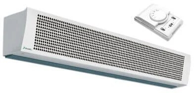 - Ефективний тепловий бар'єр: Спеціальні направляючі сопла формують щільний повітряний потік, що надійно перекриває проріз висотою до 3,5 м.
