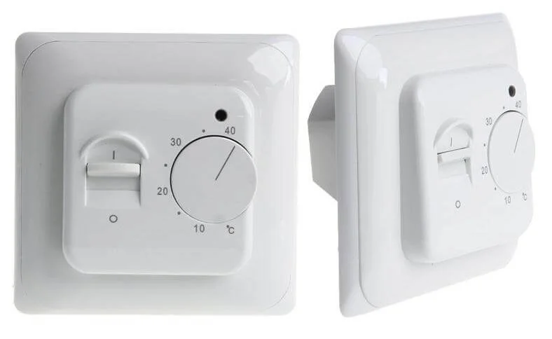Панель керування терморегулятора відрізняється простотою: на зовнішній частині розташований тумблер увімкнення/вимкнення та поворотний ролик для встановлення бажаної температури в діапазоні від +5°C до +45°C з точністю до 1°C. Така система керування сприяє оптимізації енергоспоживання, оскільки підтримує задану температуру автоматично, знижуючи витрати на обігрів. Світлодіодна індикація відображає поточний стан роботи.