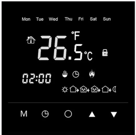 Наявність великого РК-дисплея з підсвічуванням значно спрощує програмування пристрою та моніторинг поточних параметрів. Сенсорна панель управління забезпечує інтуїтивно зрозумілу взаємодію з терморегулятором.