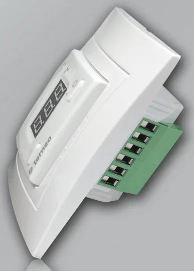 Керування температурою здійснюється за допомогою механічної ручки, що забезпечує інтуїтивно зрозуміле налаштування. Наявність тумблера дозволяє вимикати терморегулятор, не змінюючи при цьому встановлений рівень температури, що зручно для тимчасового відключення системи. Монтаж пристрою виконується у стандартний підрозетник діаметром 60 мм.