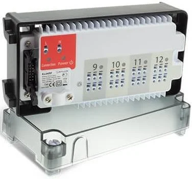 Пристрій працює від живлення 24 В та забезпечує гнучке керування різними компонентами системи. Він підтримує підключення як нормально закритих, так і нормально відкритих сервоприводів, що розширює можливості інтеграції. Наявність додаткових виходів для керування насосом центрального опалення та котлом дозволяє централізовано контролювати ключові елементи системи. LED-індикація забезпечує візуальний контроль стану роботи.