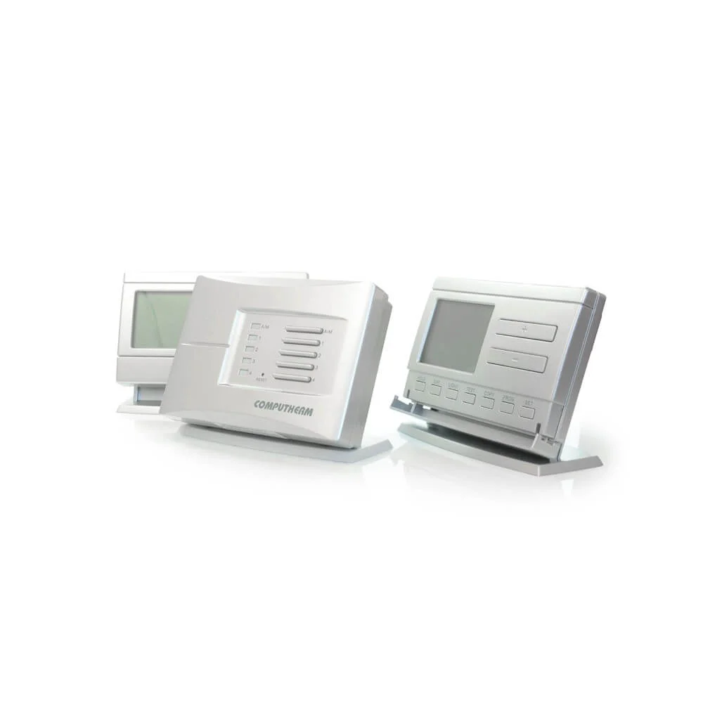 Бездротовий тижневий програматор COMPUTHERM Q8 RF призначений для точного керування системами опалення, забезпечуючи комфортну температуру в приміщенні. Базова комплектація включає приймач та два мобільні термостати COMPUTHERM Q8 RF (Tx), які передають сигнали по радіочастотному каналу. Приймач може керувати чотирма релейними контактами, що відповідають окремим зонам, дозволяючи незалежне або одночасне керування.