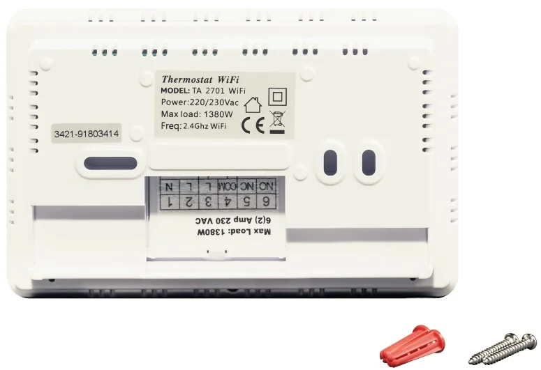 Електронний тижневий програматор Thermo Alliance ТА-2701WiFi призначений для точного керування опалювальними приладами, підключаючись до котла за допомогою кабелю та використовуючи «Сухий Канал» для активації/деактивації. Блок кімнатного термостата слугує як інтуїтивно зрозумілий графічний інтерфейс для моніторингу та регулювання температури в приміщенні. Завдяки інтегрованій функції Wi-Fi, пристрій дозволяє дистанційно керувати системою опалення через мобільний додаток ThermoAllianceSmart, доступний для смартфонів на базі Android та iOS.