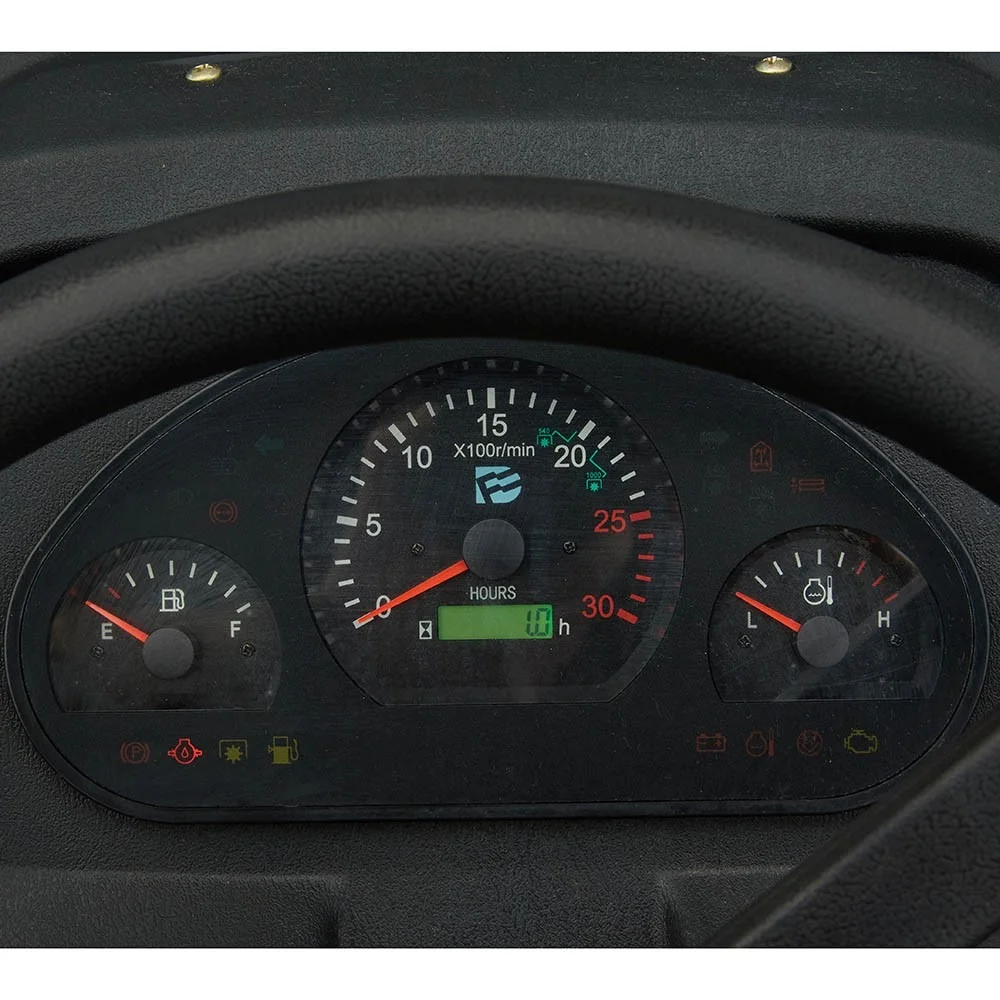 - Комфорт оператора підвищується за рахунок амортизованого сидіння, наявності щитка приладів з лічильником моточасів та додаткової фари для роботи в темну пору доби.
