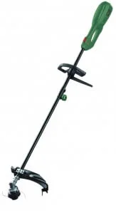 Електричний тример з верхнім розташуванням двигуна потужністю 1250 Вт призначений для кошення трави на присадибних ділянках. Модель оснащена розбірною металевою штангою для зручної транспортування та зберігання. Швидкість обертання робочого валу становить 10000 об/хв, що забезпечує ширину обробки до 38 см.
