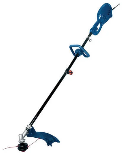Тример має ергономічний дизайн та оснащений додатковою рукояткою, що забезпечує комфортне утримання та кращу маневреність, особливо на складних ділянках. Захисний кожух оберігає оператора від зрізаної трави, а можливість легкої заміни волосіні товщиною 2.0 мм спрощує обслуговування інструменту. Цей тример не призначений для зрізання кущів, фокусуючись на догляді за газоном.