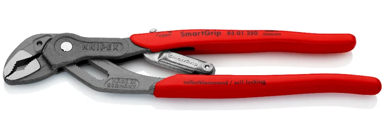 Розвідні сантехнічні кліщі Knipex SmartGrip 1 1/4" (85 01 250) довжиною 250 мм призначені для зручної та ефективної роботи з деталями розміром до 36 мм. Завдяки функції автоматичного регулювання, вони дозволяють працювати однією рукою, незалежно від того, чи є користувач правшею чи лівшею.