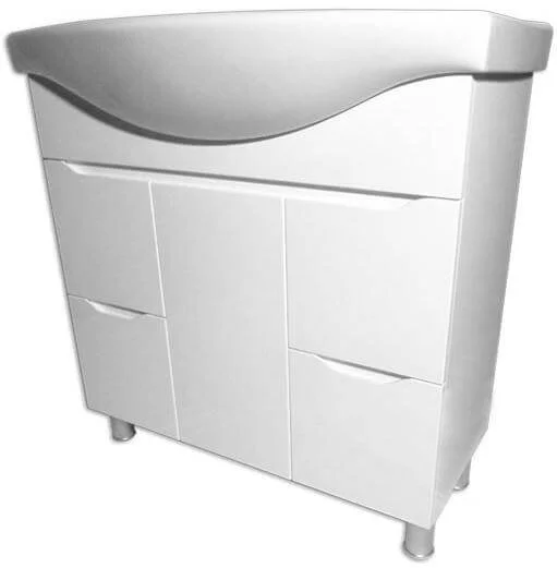 Підлогова конструкція з тумбою та інтегрованим умивальником забезпечує зручне та компактне рішення для ванної кімнати. Модель виконана з ДСП та має фасад з МДФ у білому кольорі, що сприяє легкому догляду та гармонійному поєднанню з різними стилями інтер'єру. У комплектацію входять тумба, умивальник Ізео 85 та регульовані ніжки для стабільної установки на підлозі.