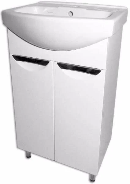 - Повна комплектація: до складу входить умивальник Солос 56 з отвором під змішувач і системою переливу, а також регульовані ніжки для вирівнювання конструкції на нерівній підлозі.