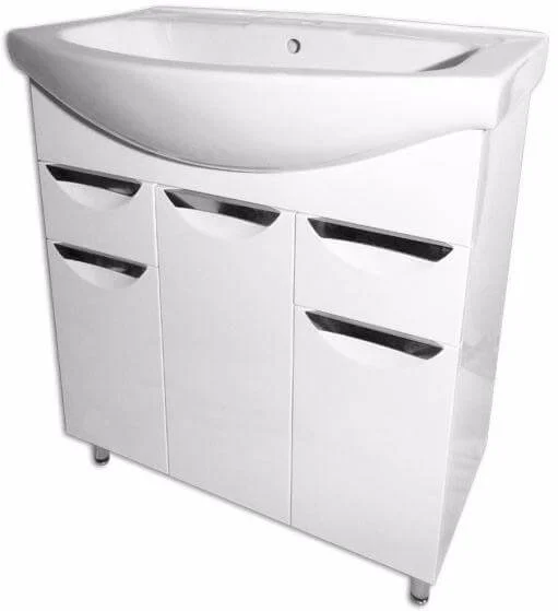 Підлогова конструкція забезпечує стійкість і зручність під час експлуатації. Модель укомплектована умивальником Ізео 75, що дозволяє створити готове рішення для ванної кімнати. Каркас виготовлений з ДСП, а фасад — з МДФ, що забезпечує достатню міцність при щоденному використанні.